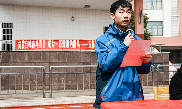 初三(1)班的邬佳航同学代表初三年级全体学生发言,他号召全体同学要带着必胜的决心,抓住每一节课堂、每一道题目、每一个知识点,他说:“‘工匠之作器也,晓之则无难,不晓则无易。’”成功,不仅需要激情,更需要恰当的学习方法。回首三年,我们见过昭示希望的晨曦,赏过璀璨如诗画般的晚霞,更倾听过夜晚的万籁俱寂。我们挥毫于试题之上,洋溢于长卷之中。在最后100天内,我们都应争取在最后考场上发挥出优秀实力,向我们自己、老师、学校、社会交出一份优异的答卷。”