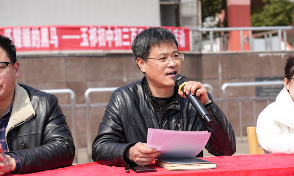 教师代表刘新烨老师寄语初三年级全体师生,齐心协力、携手共进,圆梦六月!“追梦人的世界,没有容易二字;实现中考的梦想,唯有奋斗!让我们百日竞渡,自信扬帆,彰显‘乱云飞渡仍从容’的玉中底气;昂扬‘不破楼兰终不还’的雄健精神;释放‘会当击水三千里’的澎湃动力,胜利一定属于你们,成功一定属于你们!”