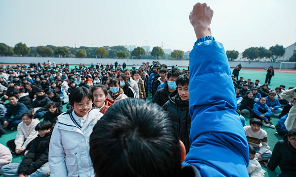 伴着《飞》的激扬歌声,本次励志教育活动结束,学生们有序地回到各自班级,拿起了笔信心满满地在目标横幅上签名,以示自己的决心。