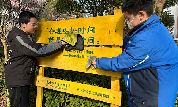 课间,校园里也经常能看到同学们志愿打扫的身影。他们有的拎着垃圾袋拾捡灌木丛中的垃圾,有的拿着抹布擦抹告示牌上的灰尘。他们不怕脏,不怕累,争着捡,比着干,整个校园洋溢着浓厚的学雷锋氛围。
