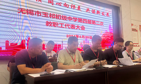 6月30日下午,无锡市玉祁初级中学第四届第二次教职工代表大会在学校阶梯教室召开。本次会议的主题是:章程统领同心向祁美共谋新发展。大会在庄严的国歌声中拉开序幕,本次教代会由薛建华副校长主持。