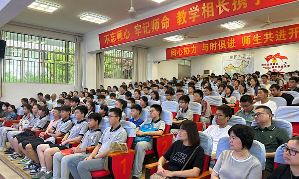 为了帮助同学们以更好的状态迎接初三新学期的到来,钟鸣副校长为在场的学生和家长做了“站在明年今天,和孩子肩并肩”的主题演讲。钟校长以现场互动的形式,真实的情景再现,提醒家长与孩子的成长同步变换自己的⻆色,强调学校与家庭教育的目标要一致,要与孩子“肩并肩”。同时,钟校长引经据典,与家长、学生畅谈科学高效的学习方法。