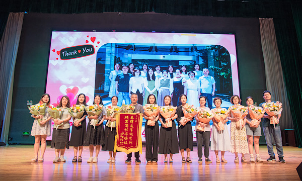 三年的学习生活,班主任给予了同学们最长情的陪伴。毕业典礼现场,“初三班主任天团”齐齐上台亮相,年级组长许建峰老师用风趣幽默的话语,祝愿毕业生活出自我、前程似锦、未来可期。言语间无不透露着对学生浓浓的爱护与关切之情。随后,各班学生代表上台献花,以报班主任们三年教导之恩。