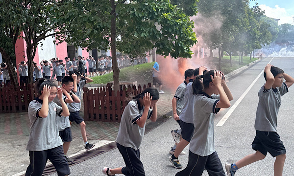 随着预警警报声的拉响,工作人员迅速到达各指定地点关注学生动向,应急避险疏散演练活动正式启动。引导员老师们按照方案的安排,提前迅速到达各楼层楼梯口认真组织师生疏散。全校师生沉着冷静、互相合作,一切行动听从指挥,按照制定的紧急事件疏散方案和路线,本着时间就是生命、纪律就是保障的原则,安全有序迅速地疏散出教学楼。在老师的带领下,全体学生到达学校运动场,并保持下蹲状态。整个演练过程快而不乱,井然有序,圆满完成了此次应急疏散演练活动。
