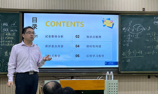 他强调复习要脚踏实地,更要心系全局,教师应当关注帮助学生在复习过程中完成知识的结构化建构和算法的程序化建构,并且指出,在期中、期末甚至中考复习中,都应当做到“先做后教,以错定教。”教师在评讲试卷的过程中,务必要做好试卷的整体分析、知识点梳理、重点内容选择、即时性纠错等工作,采取互动式地教学激发学生的复习积极性,并为学生后续学习做好指导工作。