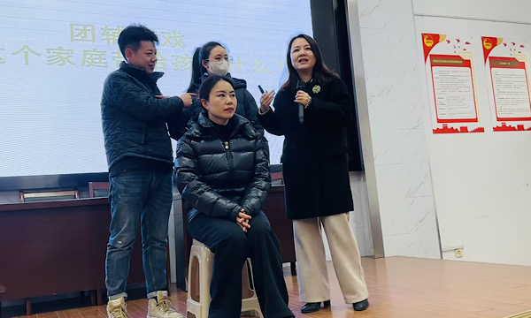 朱老师分别邀请家长来参加四个不同的团辅游戏,引导家长通过亲身体验深切感悟:孩子过度使用手机是为了满足情感的需求、缓解焦虑的情绪、获取自我价值感。如何破解孩子对手机的依赖呢?朱老师给家长们布置了功课:我们家长需要成长自己,营造一个有爱的环境;放松自己,降低期待,让孩子自由生长;摆脱单一的评价体系,多方位地看见孩子。