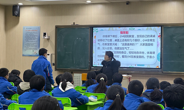 活动伊始,全体参会老师观摩了德育骨干蒋韵老师的晨会示范课《学习解题步骤,化解矛盾冲突》。蒋老师以“四步法”为核心,通过情景演绎的形式,引导学生掌握化解矛盾的关键技能:第一步忽视表象问题,第二步以尊重态度沟通,第三步协商共赢方案,第四步适时求助解决。本堂课有助于学生提升人际交往能力,充分体现了晨会课“短时高效”的育人特点。